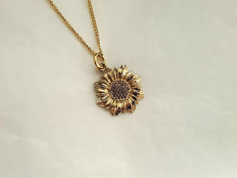 Gold Sunflower Necklace bright and happy, this sculpted sunflower bloom charm with bail is a summer favorite. This striking yet delicate solid gold flower charm. check out our gold sunflower necklace selection for the very best in unique or custom, handmade pieces from our necklaces shops. No flower can lift someone’s spirits quite like sunflowers! 14k solid gold sunflower necklace.. Gold Sunflower Necklace.